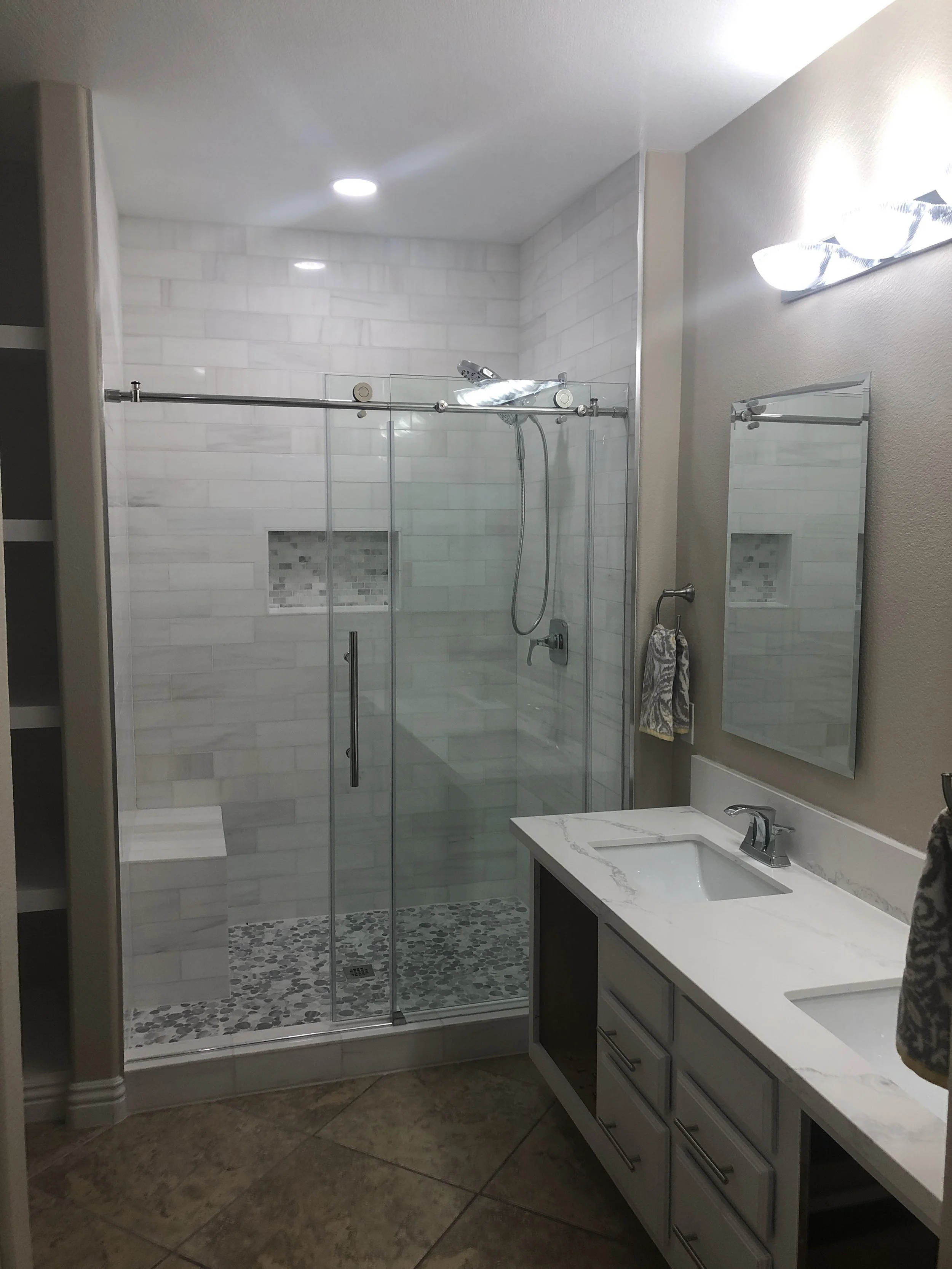 Optional Additions: In some cases, clients opt to extend their project to include bathroom floor and vanity remodeling. We have the expertise to handle these additional services seamlessly, creating a cohesive and harmonious bathroom space.